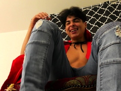 Muscular hunk Alexander strips and caresses his size 10 feet