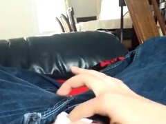 girl orgasms with hand in jeans