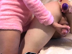 Horny Ladyboy Cums During Ass Toying Action