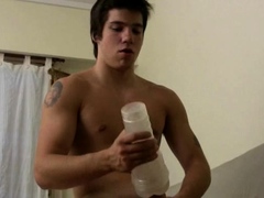 Bi 18 yr old stroking his virgin cock with my new Tenga cup.