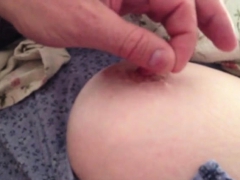 sneaky peep at her big boob as she napps.